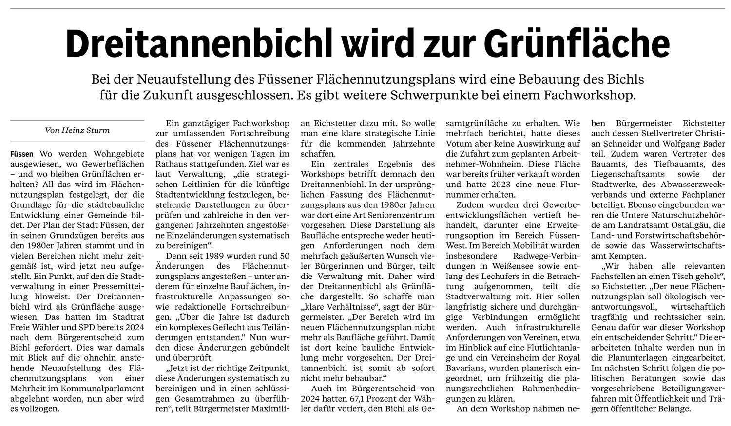 Jetzt hat der Stadtrat den von den Initiatoren des Bürgerentscheids verlangten Schutz des Dreitannenbichls beschlossen. Da könnte man meinen, jetzt ist alles gut.